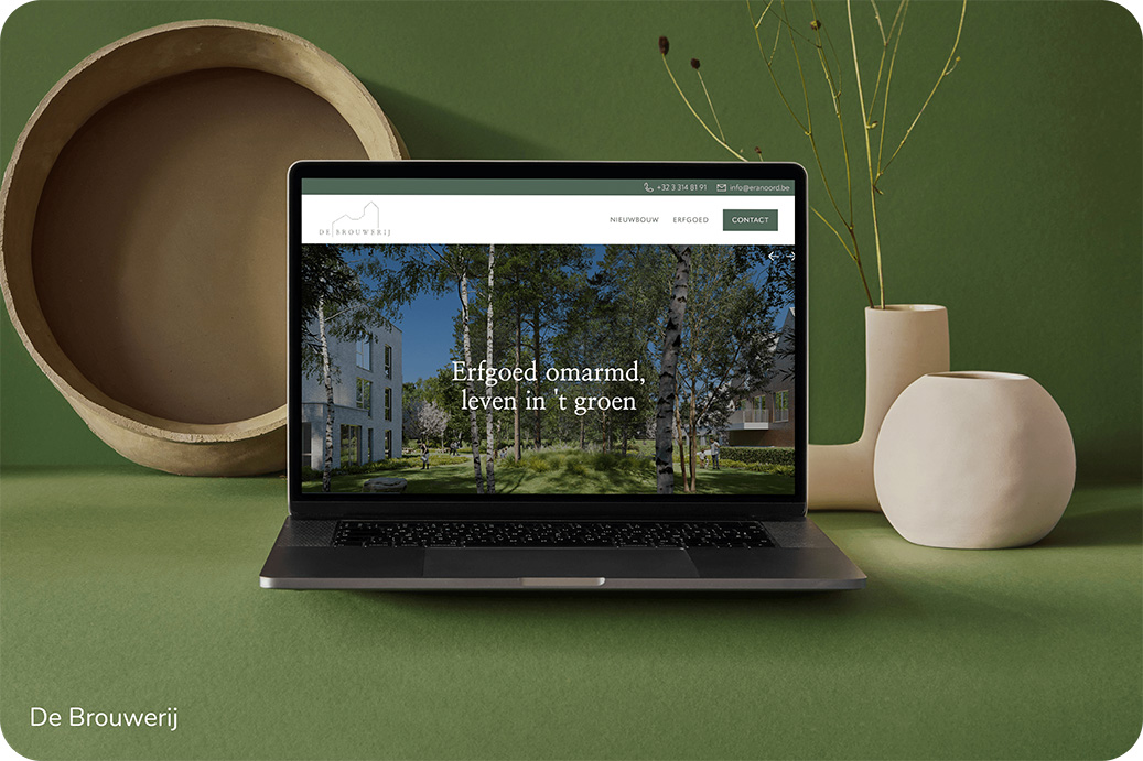 "Erfgoed omarmd, leven in 't groen" is het eerste wat je ziet bij het openen van de website. Een eyecatcher die in een paar woorden vertelt waar dit unieke project voor staat. In een brainstormsessie met ERA Noord bepaalden we samen de focus voor de website: de nadruk moest liggen op de prachtige groene omgeving, het erfgoed dat ze behouden, en de centrale ligging van het project. Deze drie pijlers vormden de basis voor de hele website. We gaven elke pagina pakkende titels en een duidelijke structuur, zodat bezoekers direct vinden wat ze zoeken. Daarnaast zijn er leuke geanimeerde elementen die de website een levendige en moderne uitstraling geven.